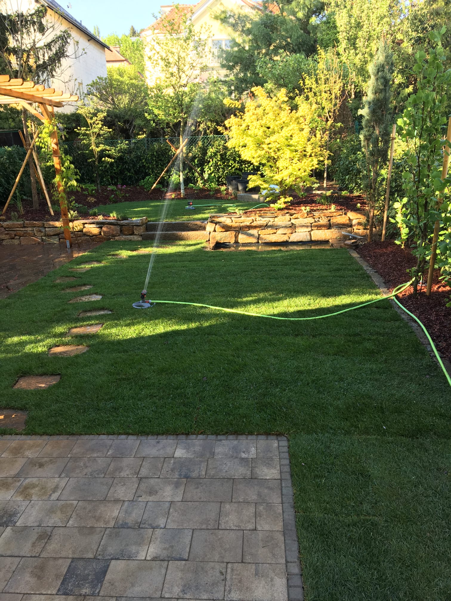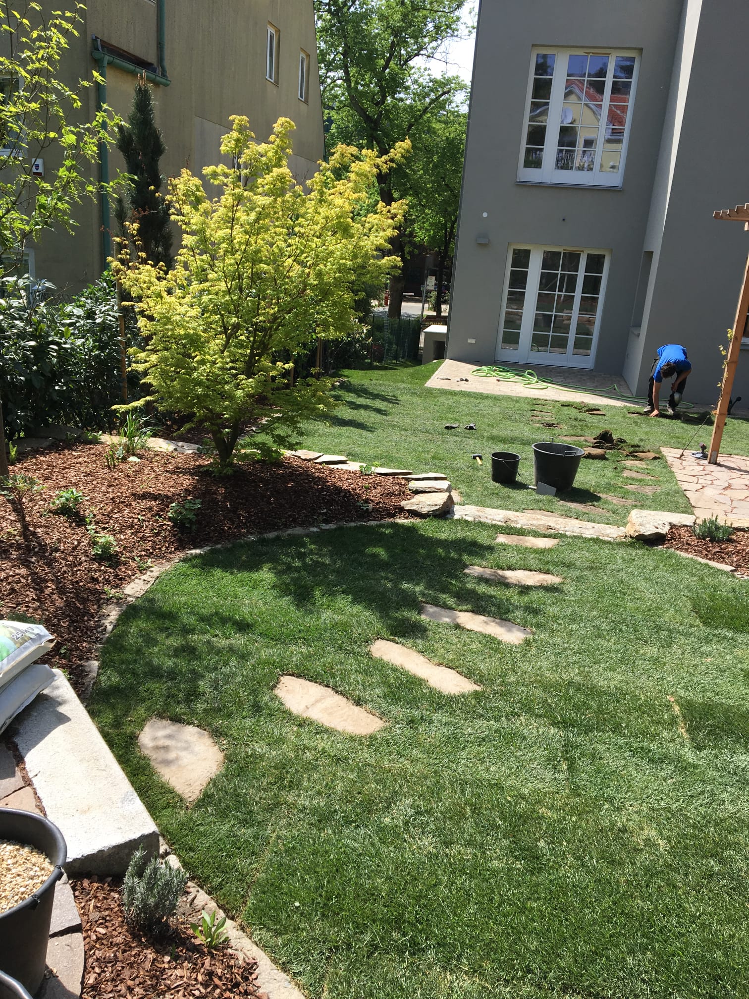 Amenajare spații verzi – de la gazon rulou și flori decorative până la alei pavate și zone de relaxare.